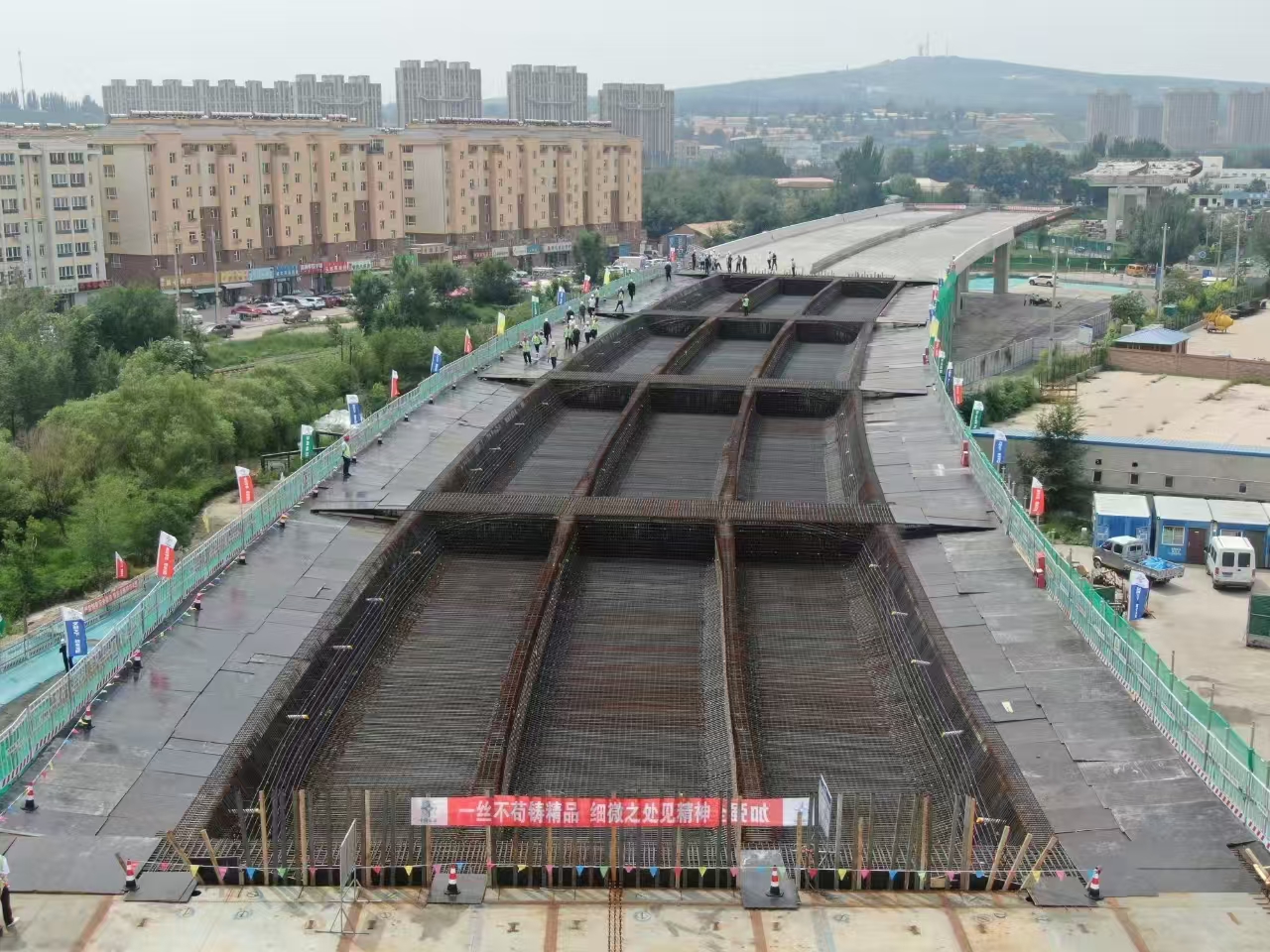 赤峰市中环路快速化改造工程土建一标段位于内蒙古自治区赤峰市红山区,线路全长约2.78公里,起止桩号为K19+280-K22+065。主要由东环特大桥、跨铁路编组站转体桥以及跨新泰和汽修厂钢系杆拱桥组成。