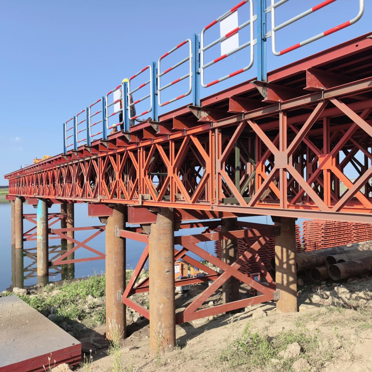 钢栈桥设计总长为303m,宽为6m,最大跨径12m,支栈桥与钻孔平台各4座,最大跨径9m,总平方3108m²。
